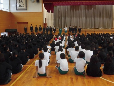 最後は,今月の歌「瑠璃色の地球」を全校合唱しました。美しい歌声が今月も体育館中に響き渡っていました。