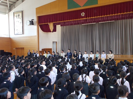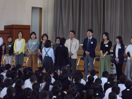 5月の学校集会は、地域の方やボランティアの方との対面式を行いました。