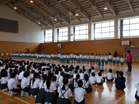 4年生の器械運動交換会に向けて校内発表会を行いました。