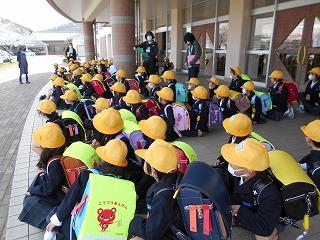 ↓ 1年生、初めての集団下校です。グループに分かれ、お話を聞く姿勢は、とても立派でした。
