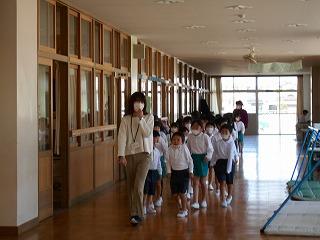 ↓ 1年生が身体測定から帰ってきました。上手に並んで移動しています。教室でも姿勢よく話を聞くことができました。