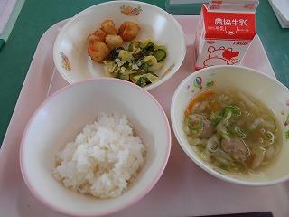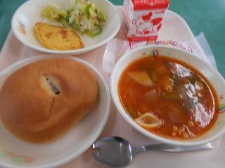 ↓ おいしい給食をしばらく食べることができないのはとても残念です。初日は、キーマカレー、二日目はイカのチリソースかけ、3日目は魚の香味上げとひじき炒め煮、あさりの味噌汁、4日目は豆パンにチーズオムレツ、ミネストローネ…おいしいメニューが目白押しの1週間でした。1年生は5月からの給食開始です。楽しみにしていてください。