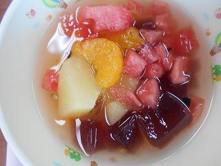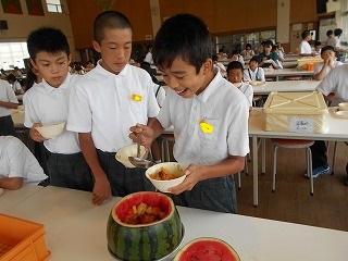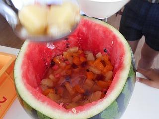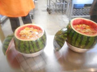 6年生のフルーツポンチのお替りは、なんと、「スイカまるごとフルーツポンチ」でした!蓋まで食べられるようになっています。