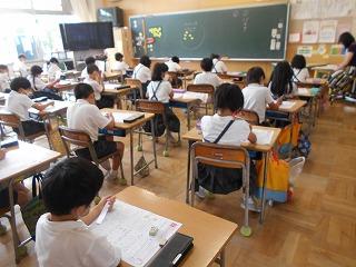 ↓5年1組 3年2組 3年1組 1年3組 各教室で、1学期のまとめのテストやテスト直しをしていました。