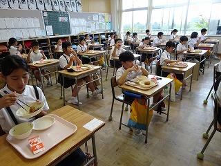 ↑今日の給食です。担々麺にバンサンスウ、焼き餃子です。こくのある担々麺と、さっぱりのバンサンスウは絶妙な取り合わせでした。焼き餃子は、旨味が抜群!本格派中華料理の給食です。