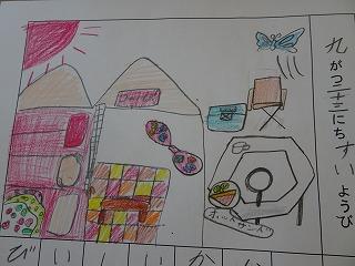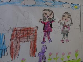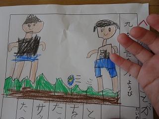↓1の1 国語 絵日記 連休中の出来事を、絵日記で伝えました。イラストも、文字もとても丁寧です。