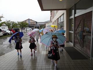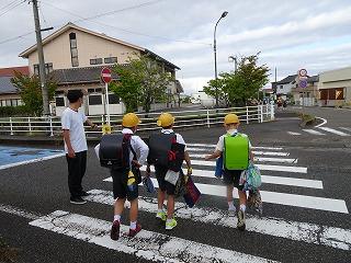 ↑ 雨の中、各ポイントで安全指導をありがとうございます。雨降りの場合はいつも以上に、車に気を付けてください。