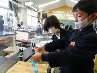 ↑4の1 理科 遊んでいるのではなさそうです。水鉄砲の水は、どうして飛ぶのだろうかと、空気と比較して説明するために、予想を立て、実験中です。