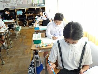 水曜日の昼学習は20分間(1時25分~1時45分)じっくりと漢字力アップのために活用しています。前半は漢字テストをして、後半は新出漢字練習や間違え直し、答え合わせなどに活用しています。わずかな時間も無駄にせず、漢字練習に取り組みます。時は金なり。