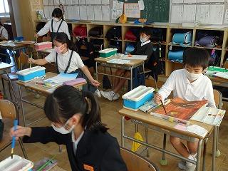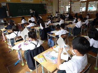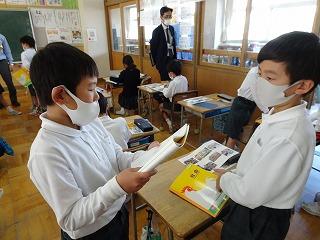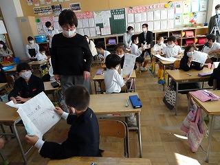 ↑5限目には、2の1で研究授業を行いました。なりきり音読劇で、想像したことを伝え合う学習です。教科書の教材文や、アーノルド=ローベルの作品を読んで、学習しています。