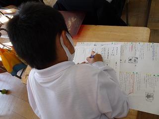 ↑3の3 習字 3年生から習字の学習が始まり、随分上達してきました。始筆、終筆もうまくなってきました。払いとはねに挑戦しています。
