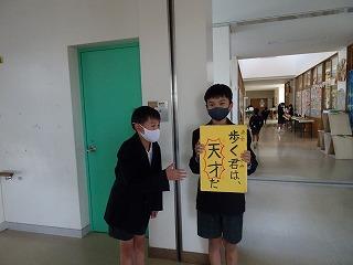 ↑各ポイントで、廊下への思いやりを呼び掛けています。よびかけ当番になって学んだこと、考えたことを振り返り、今後の自分自身に生かしていきましょう。各学級で考えたよびかけの工夫を、ありがとうございます。
