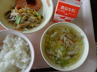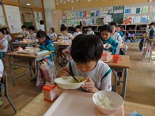 ↑今日の給食は、ごはん、ツナ入り卵ロール、甘辛ごぼうに、切り干し大根の味噌汁です。たまごには、ツナが入っていた、子供の大好きな食材の組み合わせです。甘辛ごぼうは、私にとって、これまで給食で初めてのメニューでした。ごぼうのささがきを油で揚げてあり、とても香ばしく、ごぼうのいい香りと食感をたっぷりと味わうことができました。「家でもチャレンジしてみたい!」と思いました。切り干し大根をみそ汁に入れるのも、とてもいいなあと思いました。栄養価も高く、食感もこりこりとあり、普通の大根よりもお手軽に料理ができそうです。これもチャレンジしてみようと思いました。今日もとってもおいしい給食でした。