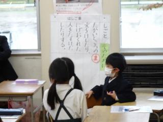 ↑1時間中、集中力と考えることが継続し、友達の意見を一生懸命聞き、それに対して、自分の考えをしっかり述べることができる1年生に育っています。