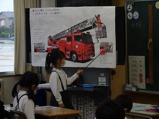 ↑どのつくりが、はしご車の仕事にぴったりかな?子供たちは、挿絵や文章、既習掲示をみながら、自分の考えとその証拠を話していきました。子供たちが主役の授業で、生き生きと活躍していました。