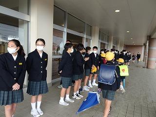 ↓6年生が、自主的にあいさつ運動をしてくれました。雨の中、ありがとう。おかげで雨の中登校してきた条南っ子のこころが温かくなったことでしょう。