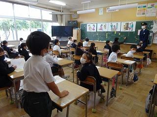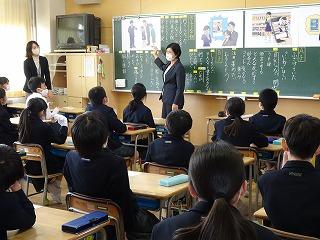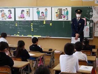↑2年生は、友達のものを隠す、または、取ってしまうという行為について事例を基に学びました。この行為は、犯罪かどうか尋ねられると、半数の児童は、「子供だから許されると思う」と答えましたが、実は、子供でも、犯罪になるということを教えていただきました。軽い気持ちでも、人のものをとるという行為は決してしてはいけないことを教えていただきました。