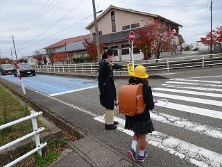 ↑随分寒くなりましたが、各ポイントで交通安全の見守りをありがとうございます。どうぞ、温かい服装でお願いします。