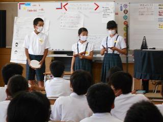 ↑5年2組の担任の先生と国語の言葉の学習です。漢語と和語、外来語の学習とそれらの言葉集めです。自分が集めた言葉を発表して聴き合いました。