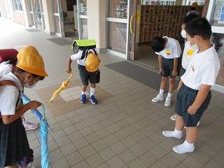 ↑ 今朝は小ぬか雨でしたが、礼儀正しい挨拶、元気な先あいさつのおかげで、今日も元気アップです。