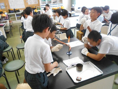 「サイエンスクラブ」では,ガスバーナーを使った実験中・・・