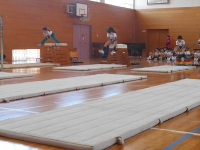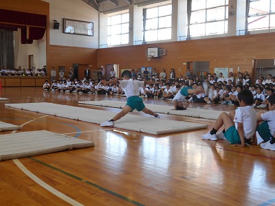 一人一人が練習してきた技を披露し,全員が拍手をもらいました。緊張もあったと思いますが,本番のように自分の力を出し切ったと思います。1~3年はきっと「自分もこんな技をしたい!」と思ったはずです。