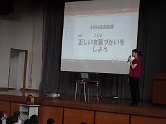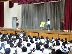 ↑6月の生活目標「正しい言葉づかいをしよう」について振り返り、7月の「クラスのみんなにナイスを伝えよう」についてお話しました。よいところをたくさん伝え合い、心のエネルギーを満タンにして、7月を過ごしましょう。