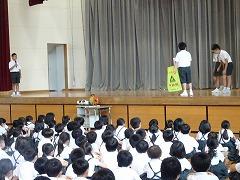 ↑安全のお話です。「いかのおすし」、子供だけではお店に行かない、おごったりおごられたりしないことについてお話しました。