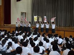 全校集会の後は、条南っ子児童集会です。今回は、音楽委員会さんのクイズ、放送委員会さんからの出し物、計画委員さんのあいさつの劇、5の2の皆さんからの出し物でした。大いに盛り上がりました。