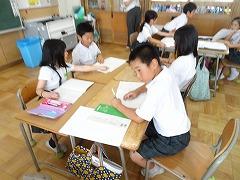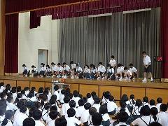 ↑6月はいろいろな行事がありましたが、町音楽会に向けて、「この行事が終わったらどんな人になっていたいか」ということを考えて練習していたそうです。全力で挑む人になりたい、だから全力で練習を行う、仲よく絆を深めていたい、だから、振り返りの話し合いでは、積極的に話し、自分の力を出し切るなど、練習にも目的を持って参加していました。行事を通して、どんどん成長する姿をうれしく思います。だから、音楽集会は大成功であったことを、全校に紹介しました。6年生の宿泊体験学習も同様です。時間を守り、ルールを守り、絆を深め合うことができました。