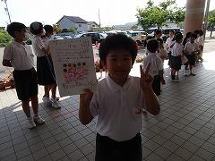 ↓1年生と6年生のボランティアさんです。進んであいさつをしています。
