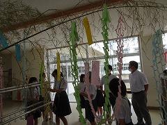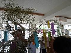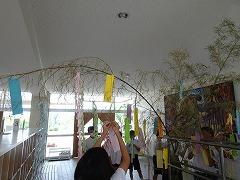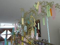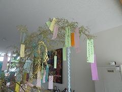 ↓七夕の笹を中条地区くらし安心ネットワークの方からいただきました。子供たちは短冊に願いを込めて飾りました。