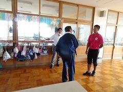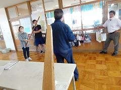 ↓これは不審者対応訓練の職員研修です。津幡警察署の方を講師として招聘し、不審者に対してどのように安全を守るか訓練しました。