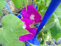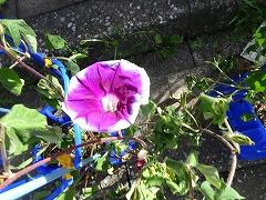 ↓1年生のあさがおの花が咲きました。青や紫、水色、いろいろな花が咲きました。毎日お水をあげたから、元気に育ってくれました。これからも、お水をあげて、育ててくださいね。