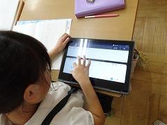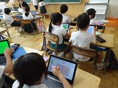 ↓2年 生活科 津幡町の探検をしたことをプレゼンテーションにまとめました。友達のプレゼンテーションを開いて、読んでいます。