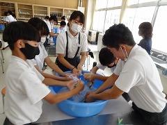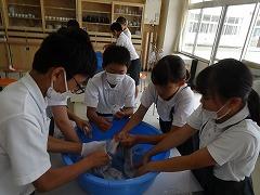 ↓4年生が中条公園で仕掛けを作り、仕掛けに入った魚たちです。自分たちで仕掛けの仕方を工夫しました。