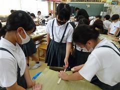 ↓4年図画工作 のこぎりを使って、木を切って、壁掛けを作ります。のこぎりは友達と協力すると、うまく使えました。
