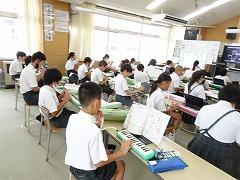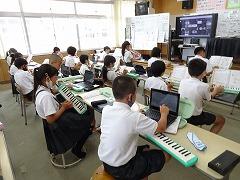↓5年音楽 鍵盤ハーモニカで「リボンの踊り」の演奏です。パートごとに分かれ、どのように演奏するとよいか考えて合わせていました。