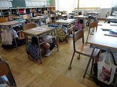 ↓11時、石川県のシェイクアウトに参加し、地震が起きたときの避難の基本行動「しゃがむ、隠れる、じっとする」をとりました。