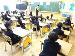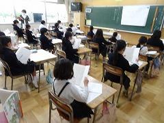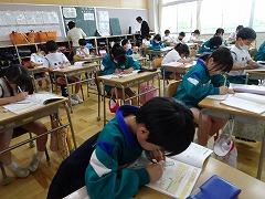 ↓5年 習字の授業、基本的な技術を確認しました。日本の文化の習字を今年も上達させてほしいと思います。