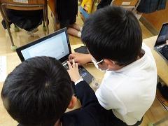↑1年生 パソコンサポーターの先生と一緒にクロムブックの使い方を学んでいます。今日は、写真を撮影する方法を学びました。まずは自分の写真を写すと、思わず大歓声が上がりました!