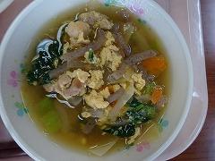 ↓今日の給食です。今日は、今が旬のたけのこご飯、鶏肉と野菜の胡麻からめ、めった汁でした。たけのこご飯には、竹の子の他、しいたけ、油揚げが入って炊き込んでありました。鶏と野菜のごまからめは、にんじん、枝豆、とうもろこしも入って、いろどりよく食欲のわくメニューでした。めった汁では、たくさんの食材をいただくことができました。今日も栄養バランスのよいおいしい給食、ごちそうさまでした。