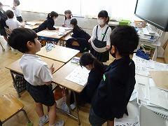 ↑2年生活科 1年生に学校紹介をする準備を進めています。グループで一生懸命話し合い進めていました。