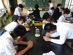 ↑6年理科 ろうそくの火はどうなるか、予想を立て実験しました。