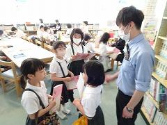 ↓1年生もズックの入れ方に気を付けてきれいにそろえることができました。図書館で学校司書の先生から図書館の使い方を教えていただきました。これからたくさん本を読んでください。