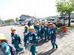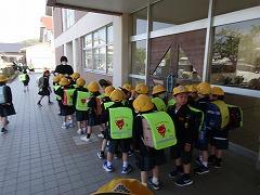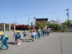 ↑1年生はそれぞれの方面に向かって並んで下校します。安全に気を付けて、通学路を守って下校してください。寄り道は絶対にしないでください。
