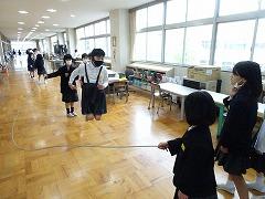 ↑朝休み、3年生が大繩で遊んでいる様子です。