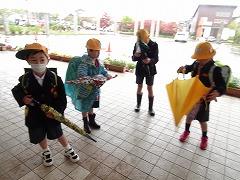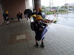 ↓雨の音を楽しみながら、あいさつ運動をしてくれました。今日のあいさつ運動は3の3の皆さんです。雨の日は3年国語教材の「きつつきの商売」を思い出すと、楽しくなりますね。
