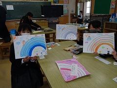 ↓2年図画工作 カラフルなうちわを創りました