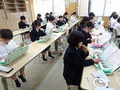 ↓4年生音楽 鍵盤ハーモニカの練習です。心を合わせて演奏しました。
